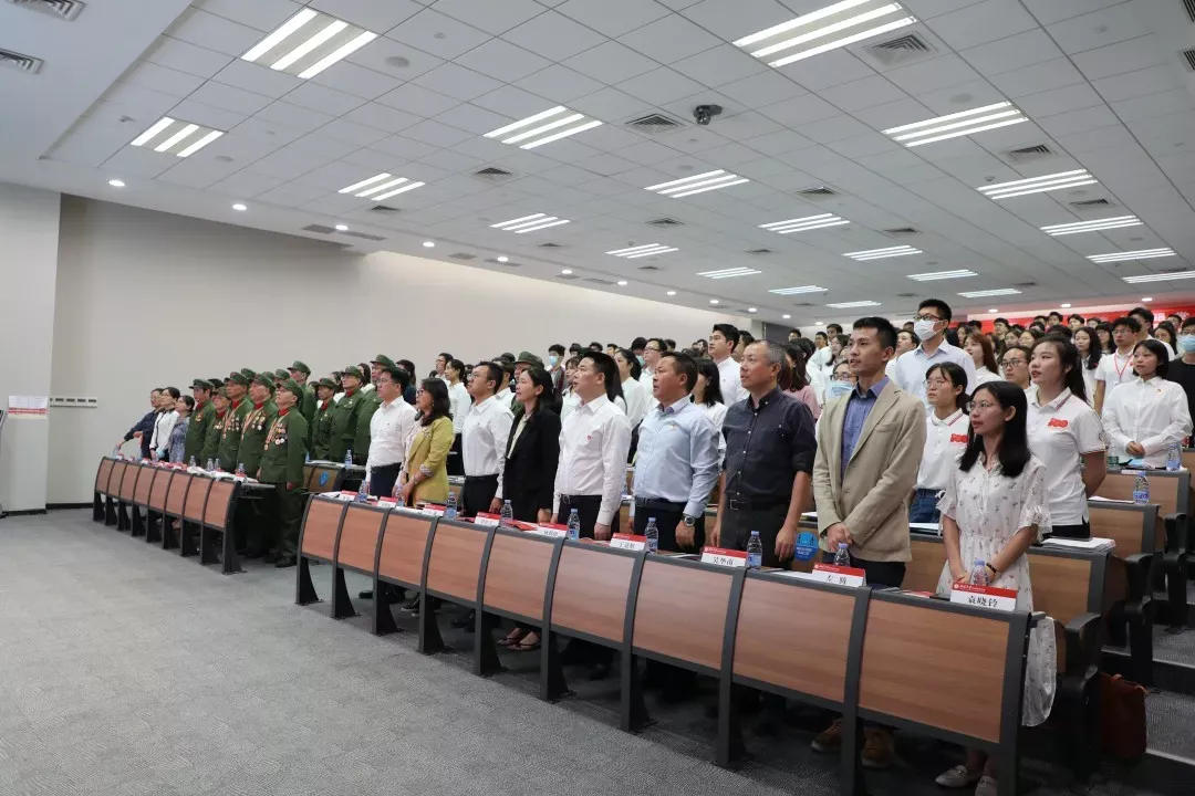 聆聽參戰(zhàn)英雄的分享后,北京大學深圳研究生院學生代表和高級團校學員帶來主題詩朗誦《黨在我心中》,向黨的百年華誕獻禮,向為黨為國家英勇獻身的英雄們致敬。港澳青少年代表、北大深研院高級團校學員代表分享的學習感悟,表達了誓將中國共產(chǎn)黨創(chuàng)立的偉大事業(yè)傳承下去的堅定信念?;顒游猜?,全體與會人員齊聲高唱的《沒有共產(chǎn)黨就沒有新中國》在報告廳中回響,將本次活動的學習教育氛圍推向高潮。