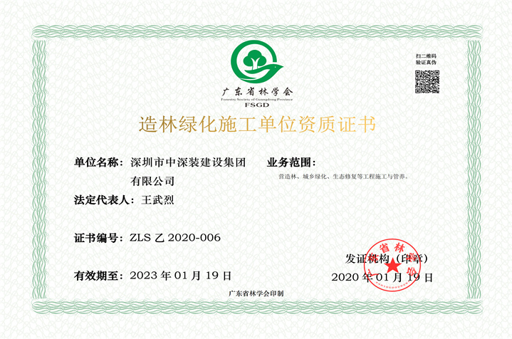 深圳綠色產業資質認證證書