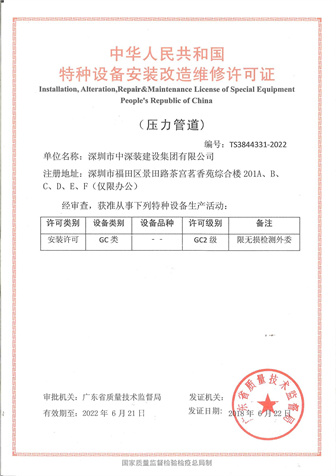 特種設備安裝改造維修許可證 ( 壓力管道 )GC2 級