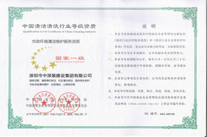 中國清潔清洗行業等級資質國家一級