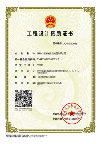 中深裝消防設施工程設計專項乙級證書