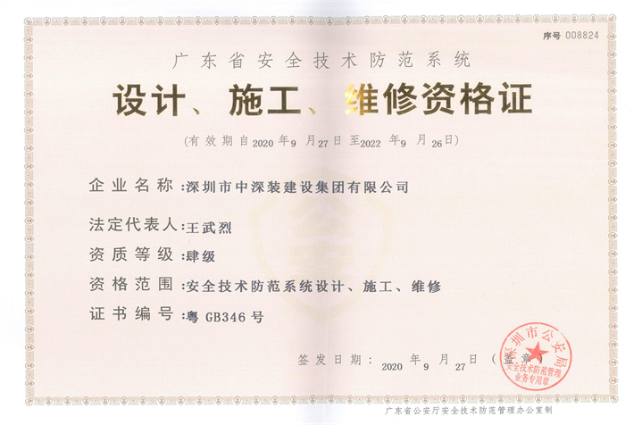 安全技術(shù)防范系統(tǒng)設(shè)計(jì)、施工、維修叁級(jí)