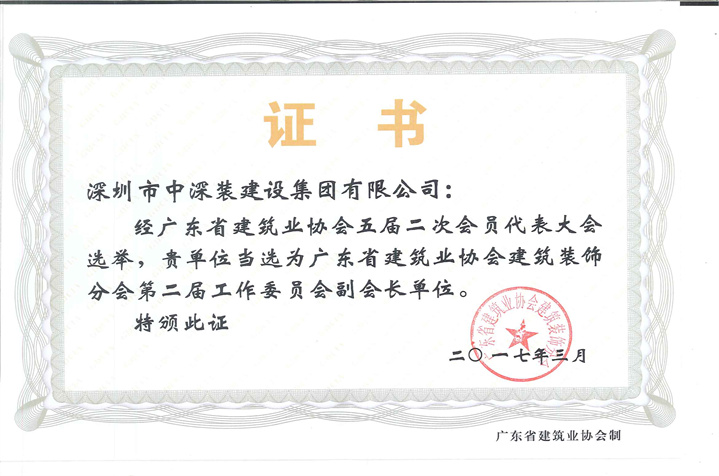 廣東省建筑業協會建筑裝飾分會副會長單位