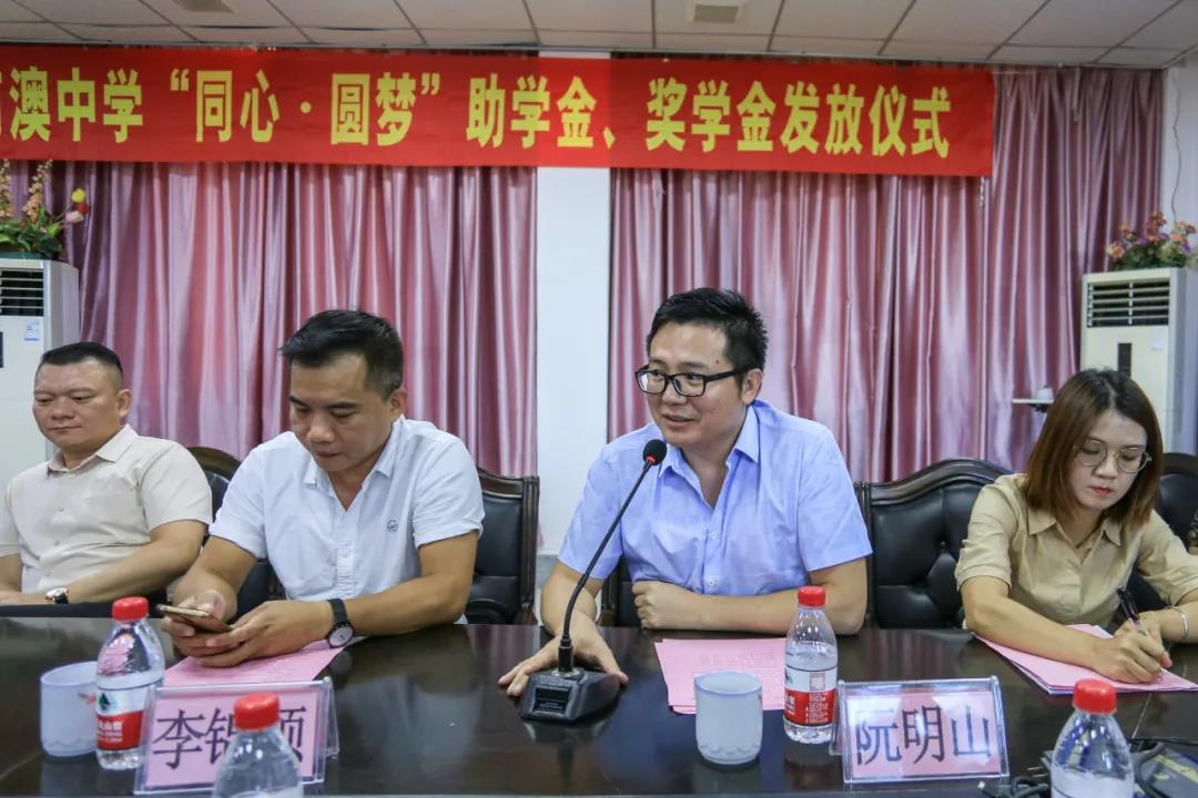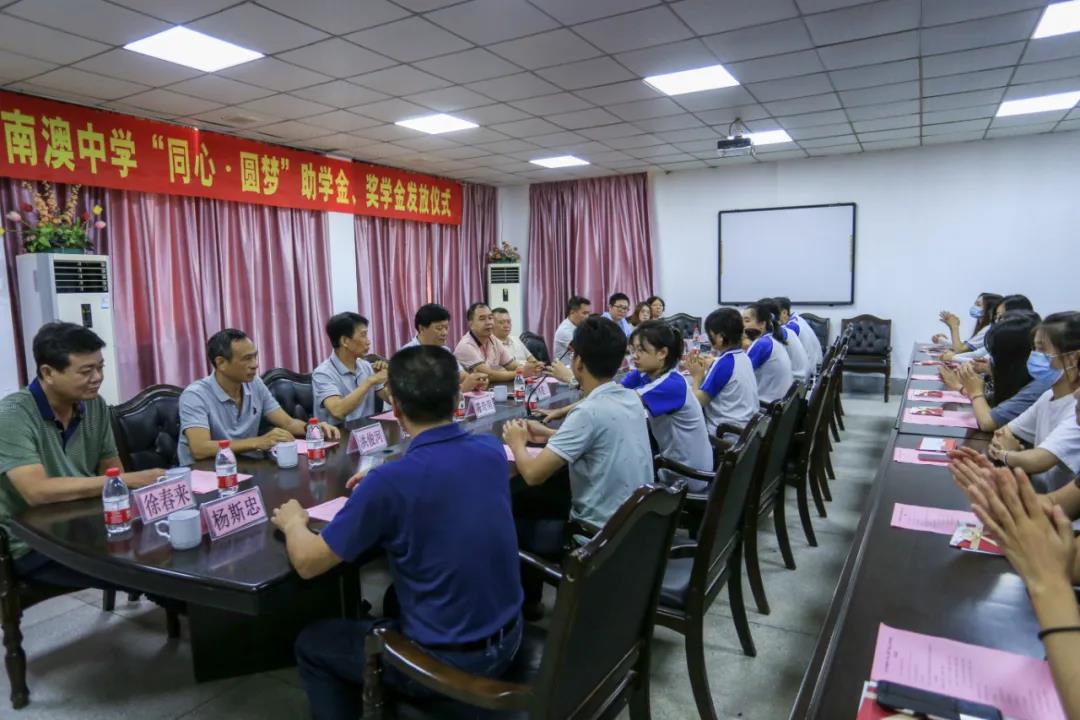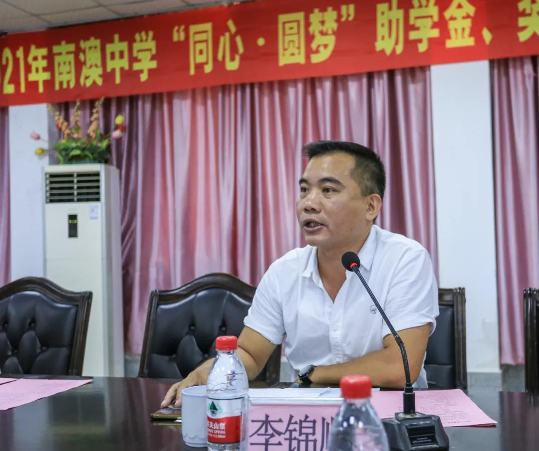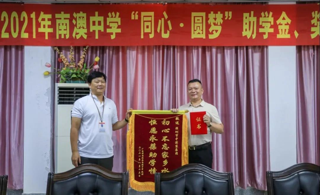 愛滿南澳,助夢起航。8月15日,2021年度南澳中學“同心·圓夢”助學金及獎學金頒發儀式在南澳中學如期舉行。深圳市南澳商會會長、中深裝集團董事長柯穎鋒現場為23名資助學生、1名優投線高考生、1名優秀教師頒發助學金及獎學金。