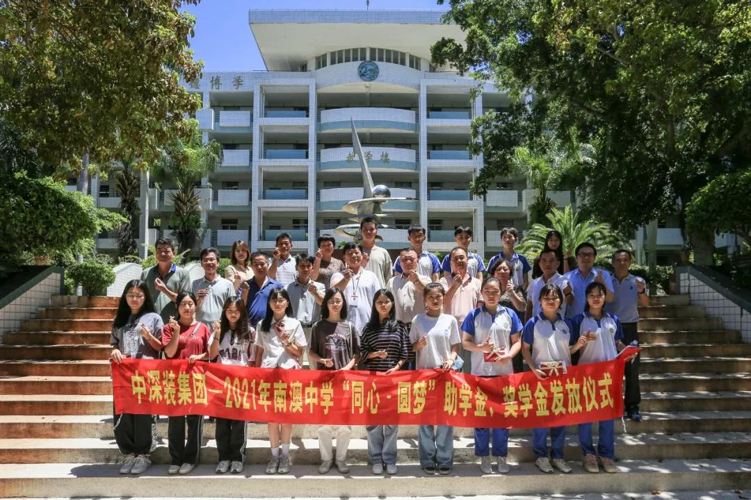 本年度“同心·圓夢”助學金頒發儀式最終在集體合影留念中落下帷幕,董事長柯穎鋒攜中深裝集團祝福同學們在大學的學習生活階段中,學習順利、多姿多彩;祝福南澳中學的教師職工碩果累累,身體健康;祝福南澳中學發展壯大,桃李天下。