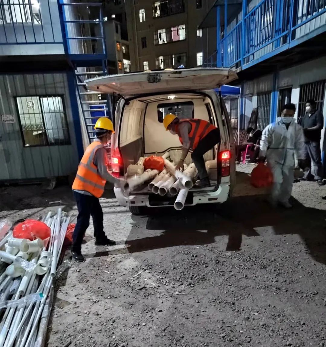 順利的開展疫情防控工作,不僅需要志愿者參與核酸檢測,還需要專業(yè)的施工團隊建設(shè)臨時的防疫場地和設(shè)施。為此中深裝集團成立了“抗疫應(yīng)急支隊”,專門為有需求的疫情防控工作點搭建、改造、安裝臨時的防疫場地和設(shè)施。而隊員都是企業(yè)召集的志愿者,勇于擔(dān)當(dāng),樂于奉獻的他們以專業(yè)保證品質(zhì),以擔(dān)當(dāng)保證效率。