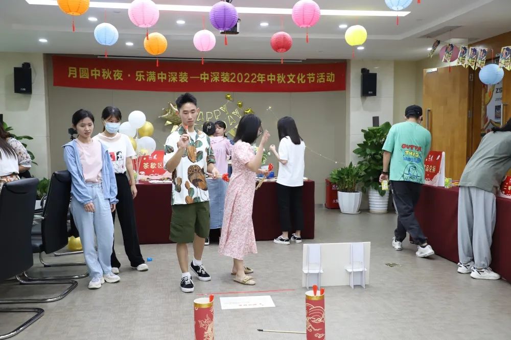 本次活動以柯穎鋒董事長、李貴麗副董事長致以中秋佳節美好祝愿,并親自示范游戲規則拉開歡樂盛幕,員工們紛紛加入,參加游戲,現場氣氛熱烈而溫馨,精彩紛呈。讓大家在努力工作中感受到中深裝“家”的溫暖,也寄托了思鄉之情,營造出節日的氛圍。