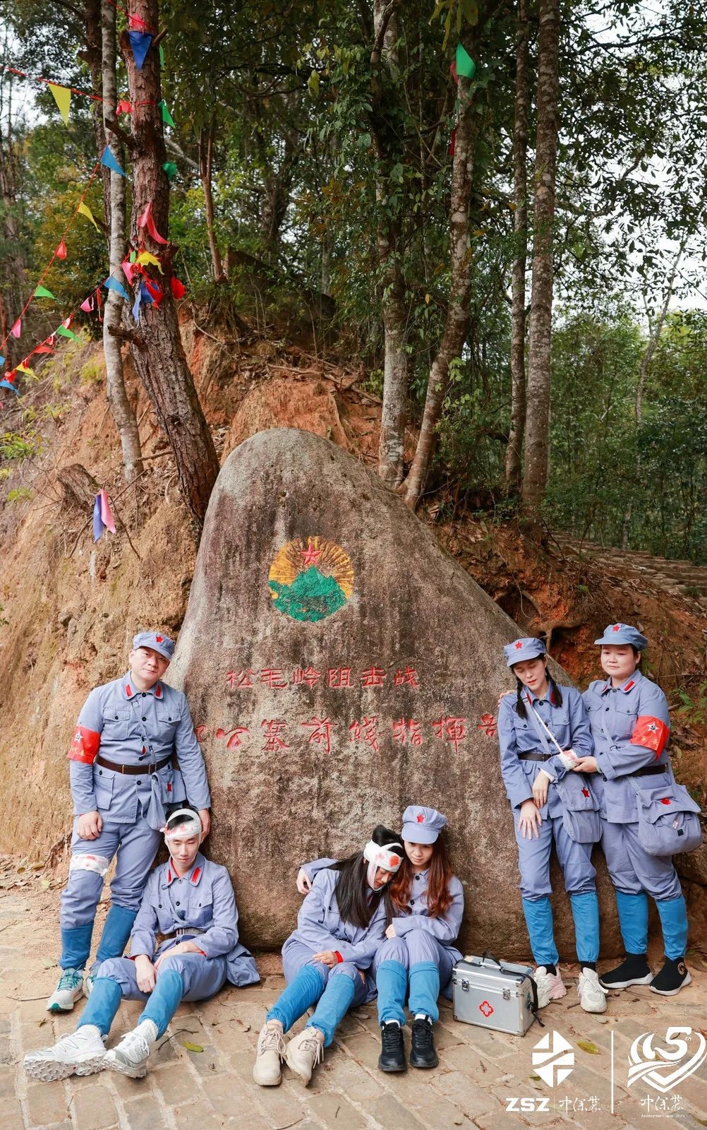 “青山處處埋忠骨、松濤陣陣慰英魂”,革命先輩們開創了中華民族光輝的革命歷史,懷著對老一輩革命烈士最崇高的敬意,我們踏著英雄的足跡,在松毛嶺體驗了當年戰斗時走過的路,模擬綁擔架、護送傷員,從無名烈士墓到郭公寨指揮所,深入了解這一場慘烈的戰斗,傳承革命先輩的理想信念和熱血精神。
