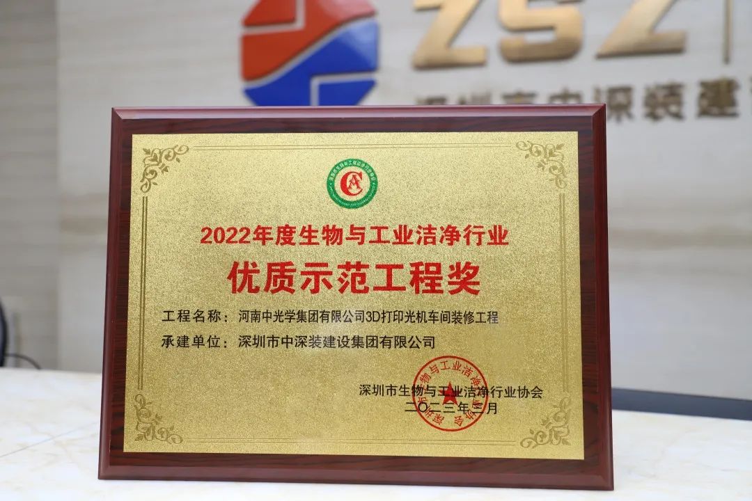 中深裝集團受邀出席,總裁徐翠媚代表集團參加了本次大會。在表彰儀式上,中深裝集團承建的河南中光學(xué)集團有限公司3D打印光機車間裝修工程項目榮獲“2022年度潔凈行業(yè)優(yōu)質(zhì)示范工程”、公司總裁徐翠媚榮獲“2022年度潔凈行業(yè)領(lǐng)軍人物”稱號。