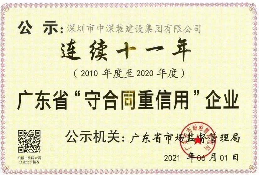 中深裝集團已連續11年獲“廣東省守合同重信用企業”稱號,是“中國建筑裝飾行業百強企業”、“國家級高新技術企業”、廣東省”專精特新“企業。