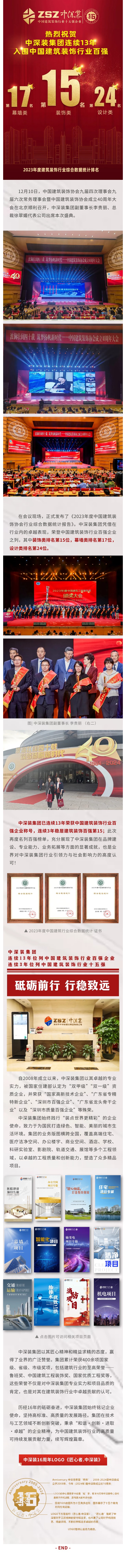 載譽前行 | 中深裝集團穩居中國建筑裝飾行業十五強