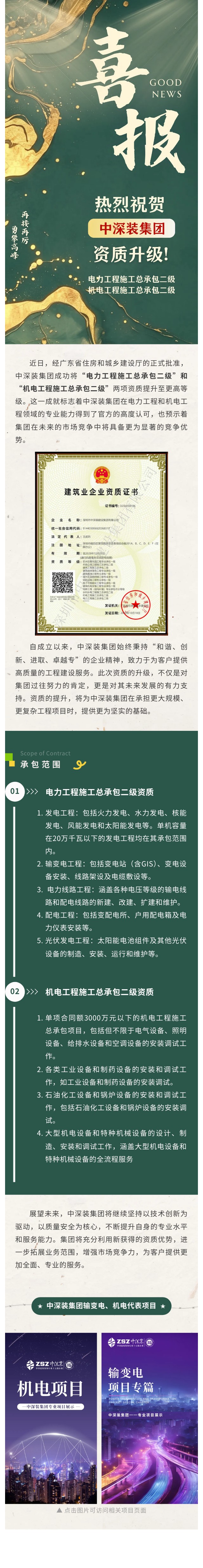 中深裝集團再創輝煌,兩項總承包施工資質再獲升級!