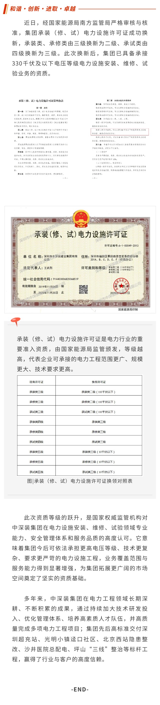 中深裝集團承裝(修、試)電力設施許可證成功換新